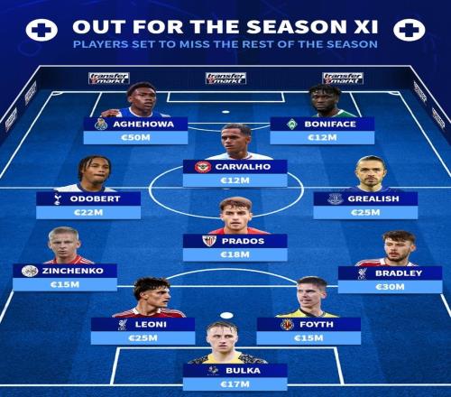本賽季報(bào)銷(xiāo)陣容:格拉利什、萊昂尼、布拉德利、奧多貝爾在列