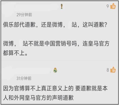 中國網(wǎng)友也不慣著了,紛紛表示不接受皇馬俱樂部處理結(jié)果,所謂道歉動態(tài)下方評論區(qū)都淪陷了。