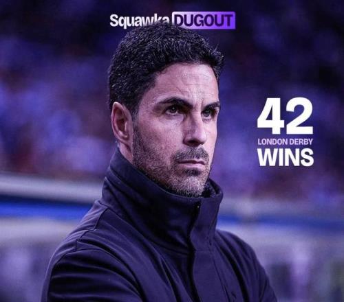 阿爾特塔英超倫敦德比取勝42場(chǎng),追平穆里尼奧僅次于溫格