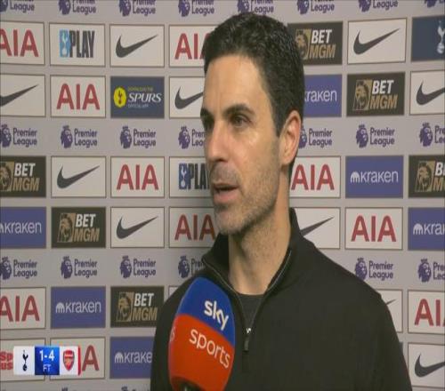 率隊(duì)在英超第27輪的北倫敦德比客場(chǎng)4-1大勝托特納姆熱刺之后,阿森納主教練阿爾特塔接受了來(lái)自天空體育的采訪。